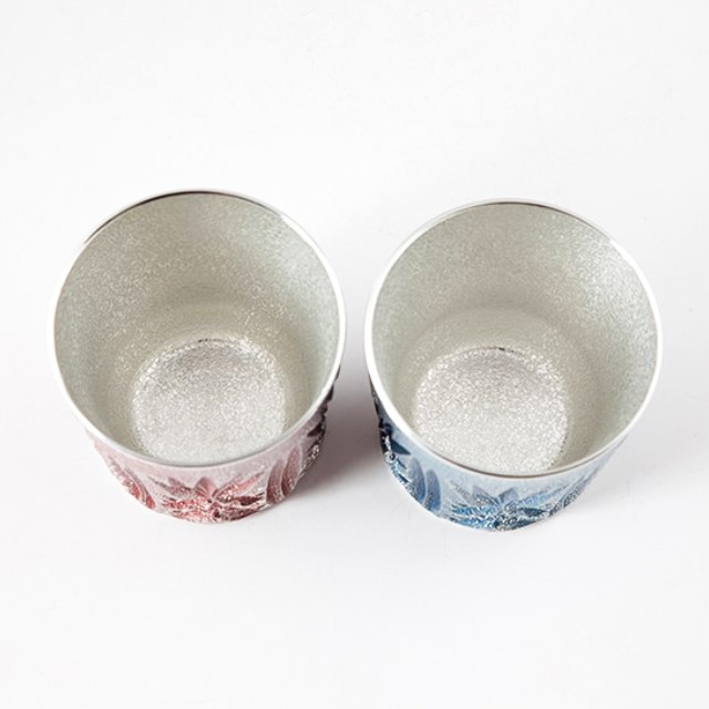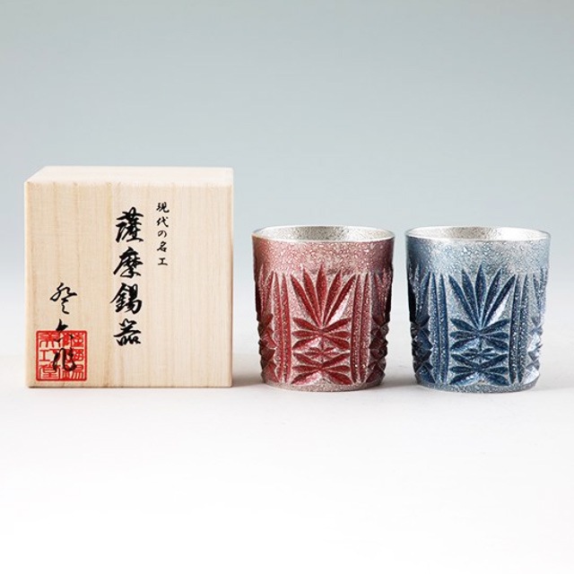 薩摩錫器 錫 切子オンザロック 赤漆加工・藍漆加工 200ml×2 155-3 155-5 薩摩錫器工芸館 代引不可