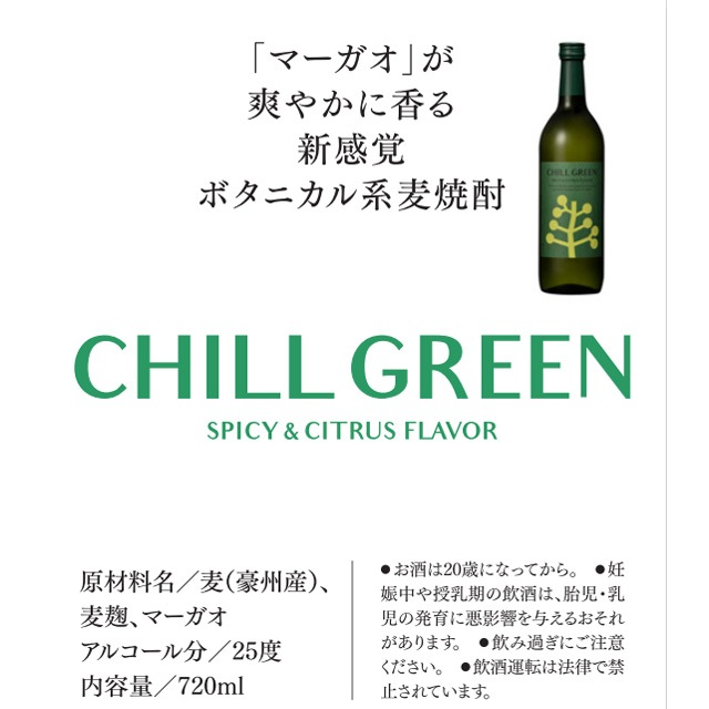 【送料無料】チルグリーン 25度 720ml×2本 麦焼酎 CHILL GREEN spicy&citrus 濱田酒造