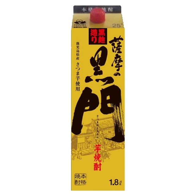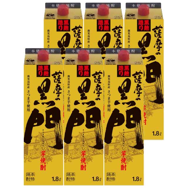 【送料無料】薩摩の黒門 パック 25度 1800ml×6本 芋焼酎 若松酒造