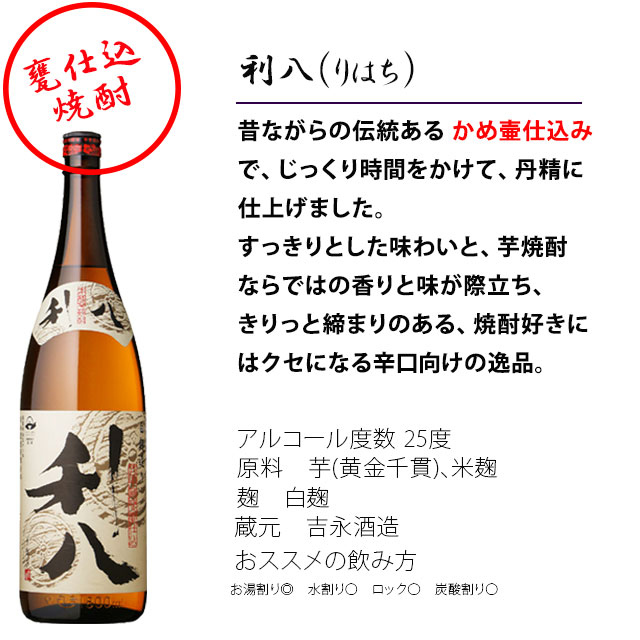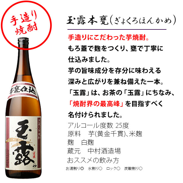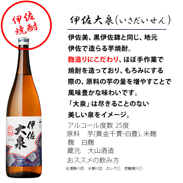 | 【送料無料】薩摩銘酒飲み比べセット。送料無料、お買得価格となっております。 元祖プレミアム焼酎「伊佐美」・プレミアム焼酎村尾の兄弟酒「甕仕込み 薩摩茶屋」・伊佐地区のの銘酒「伊佐大泉」・日本唯一の製法、洞窟貯蔵「野海棠」・指宿の希少生産の蔵元 「甕仕込み利八」・手造りにこだわり甕仕込み「玉露本甕」をセットにしました。 焼酎ファンは必見です!王道な味わい含み、プレミアム焼酎の兄弟酒、木桶仕込み、手造り焼酎などの銘柄も含まれておりますので、甕仕込みが好きな方にもおすすめの飲み比べが楽しめるセットです。※北海道・東北エリアは別途運賃が1000円発生します。 |