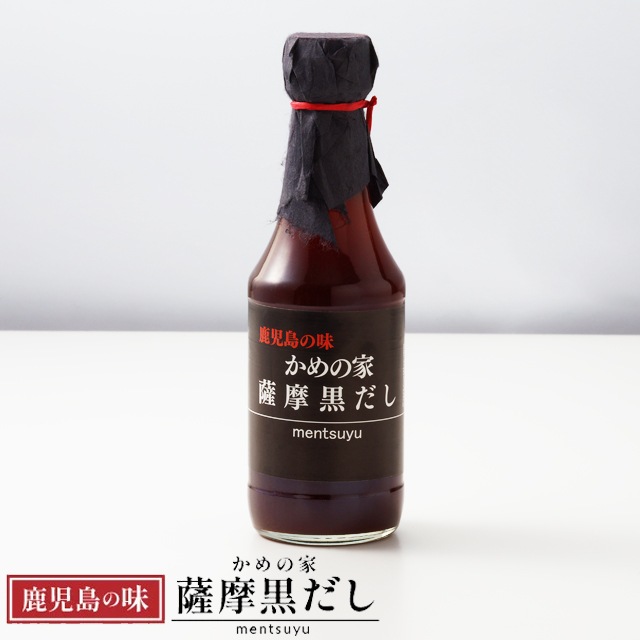 | 鹿児島の味 かめの家 薩摩黒だしは、創業10年になる焼鳥店『かめの家』で使用しているオリジナルだしが、お客様の声によって商品化されました。かつおだしの旨味を最大限に引き出し、鹿児島の甘口醤油で優しい甘さのおだしです。