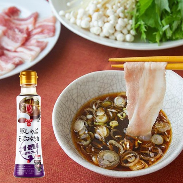 | そばつゆ仕立て豚しゃぶとは、お湯にくぐらせた豚肉、茹でたそばを、甘口でかつお風味がきいた温かい”そばつゆ”につけて食べる料理です。たっぷり使える6倍希釈。豚しゃぶの他、なすの煮びたしやだし巻たまごも作れます。 <つけつゆの作り方>テーブルポットなど保温できる容器に本品とお湯を入れて”つけつゆ”を作る。希釈割合(6倍希釈) 1人前目安量:240ml(本品40ml お湯200ml)器に”つけつゆ”を注ぎ、お好みで薬味を入れ準備する。鍋でたっぷりのお湯を沸かし、お湯の温度を90度くらいに保ちながら、豚肉をお湯にくぐらせて、”つけつゆ”につけてお召し上がりください フンドーキン ご当地豚しゃぶそばつゆたれ 240ml 九州ご当地グルメ そばつゆ たれ 豚しゃぶつゆ |