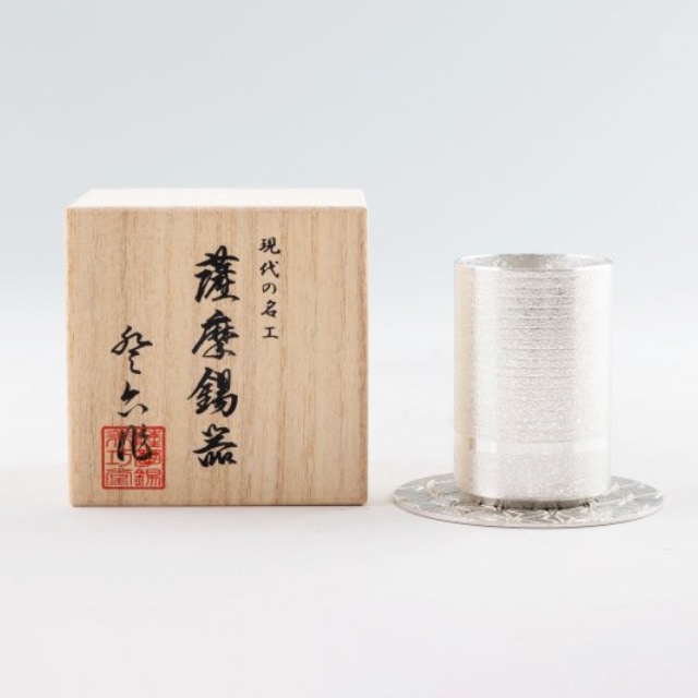 | 錫のぐい呑みは、日本酒や、焼酎を楽しむのにピッタリです。 錫は、昔から入れた飲み物をまろやかにすると言われてきました。毎日の晩酌のお供にいかがでしょうか。 錫器と一緒にさらにおいしいお酒を楽しみましょう。 コースター付のぐい呑みが食卓をさらに彩ります。 鹿児島に根付く"芋焼酎"も、鹿児島県の伝統工芸品に認定されている「薩摩錫器」と一緒に楽しむことできっとさらにおいしく感じられます。 ギフトとしての贈り物にも喜ばれる一品。 |