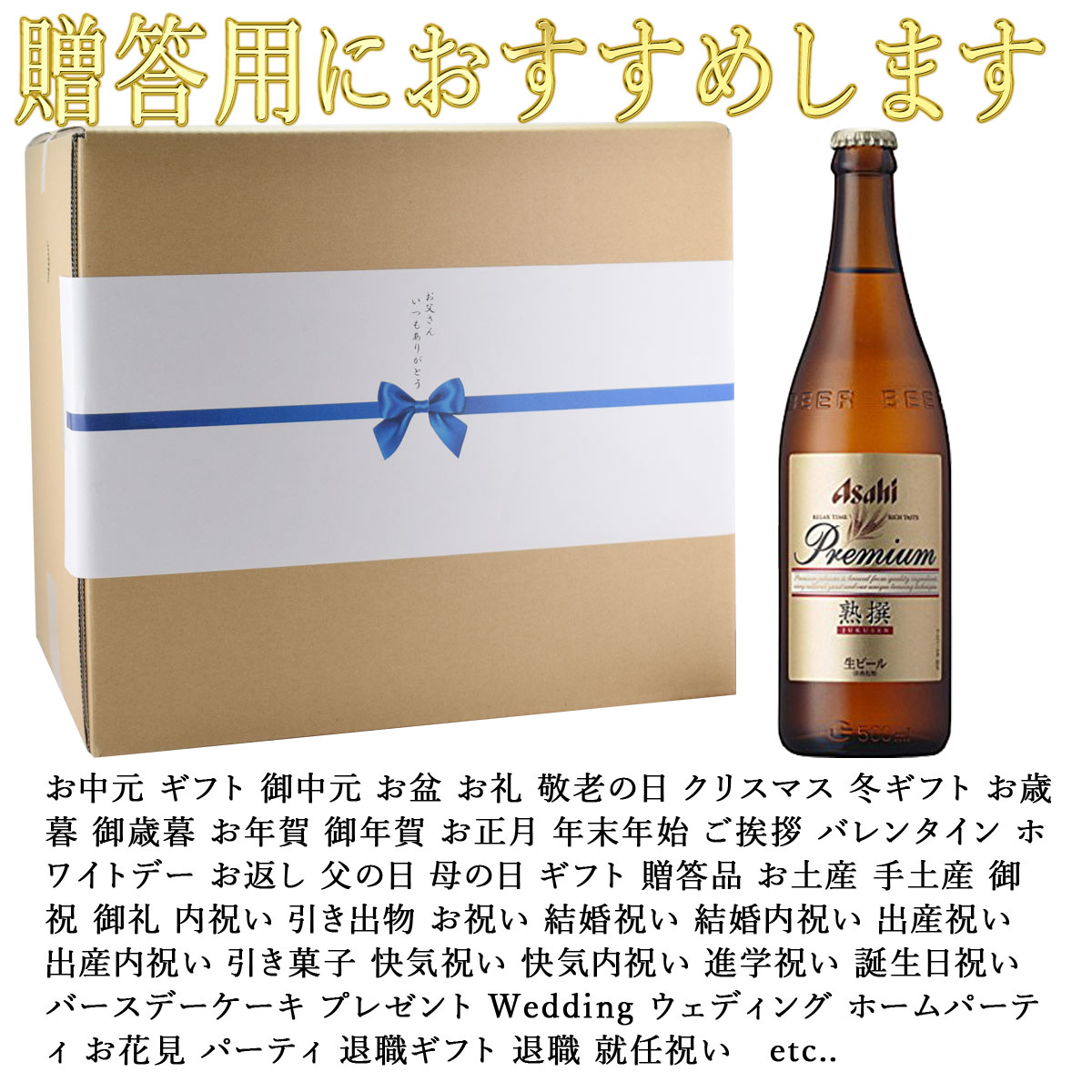 | 『熟撰(じゅくせん)』は、こだわりの素材を、丁寧に丁寧に仕込み、長期熟成させたプレミアム生ビールです。そしてアサヒビールのフラッグシップ・スーパードライをセットにしました。贈り物にもおすすめです。 | |