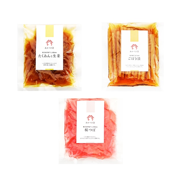 | ■商品種別 | あかつき舎 たくあんと生姜・桜つぼ・ごぼう漬 3袋 |