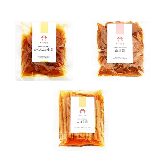 | ■商品種別 | あかつき舎 たくあんと生姜・山川漬・ごぼう漬 各80g×3袋 |