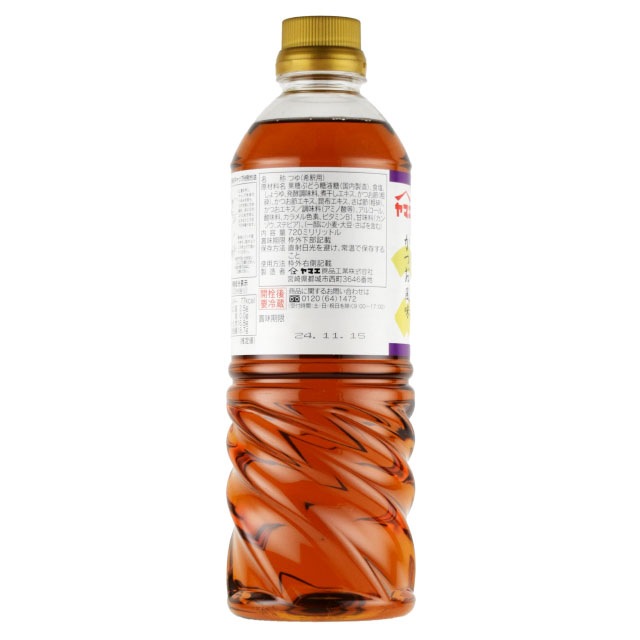 | ■原材料 | 果糖ぶどう糖液糖(国内製造)、食塩、しょうゆ、発酵調味料、煮干しエキス、かつお節(粗砕)、かつお節エキス、昆布エキス、さば節(粗砕)、かつおエキス/調味料(アミノ酸等)、アルコール、酸味料、カラメル色素、ビタミンB1、甘味料(カンゾウ、ステビア)、(一部に小麦・大豆・さばを含む) |