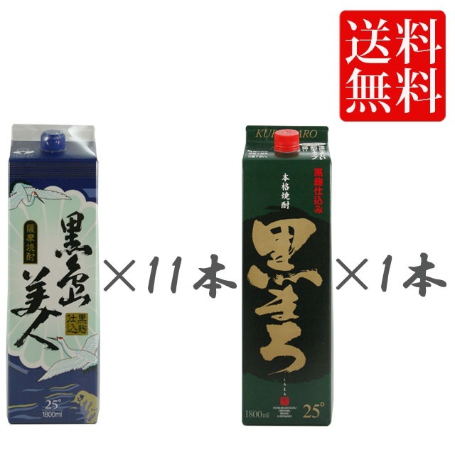 【送料無料】黒島美人 25度 1800ml 11本+黒まろ 25度 パック 1800ml 1本 計12本セット 飲み比べセット 芋焼酎