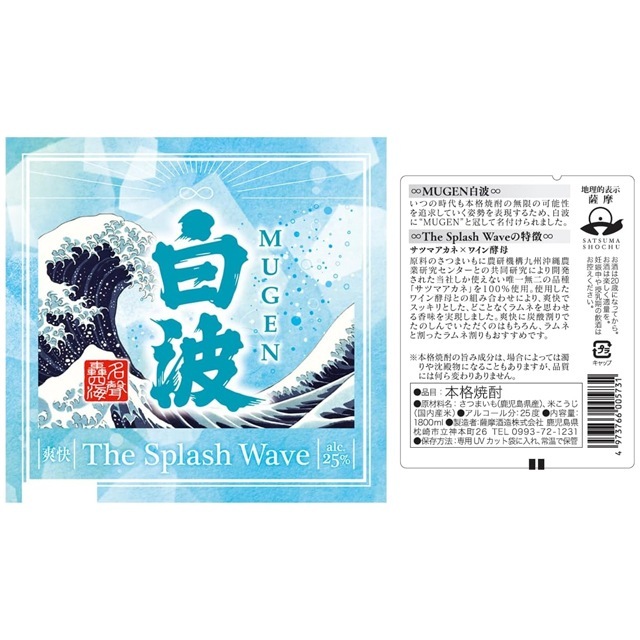 【送料無料】限定品 MUGEN 白波 The Splash Wave 25度 1800ml×8本 芋焼酎 薩摩酒造