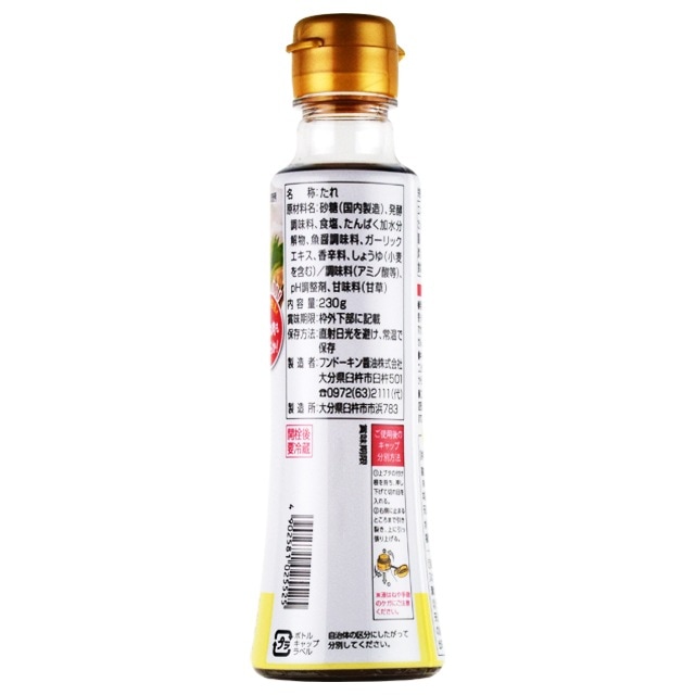 | ■原材料 | 砂糖(国内製造)、発酵調味料、食塩、たんぱく加水分解物、魚醤調味料、ガーリックエキス、香辛料、しょうゆ(小麦を含む)/調味料(アミノ酸等)、ph調整剤、甘味料(甘草) |