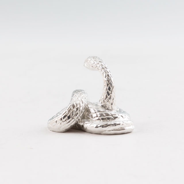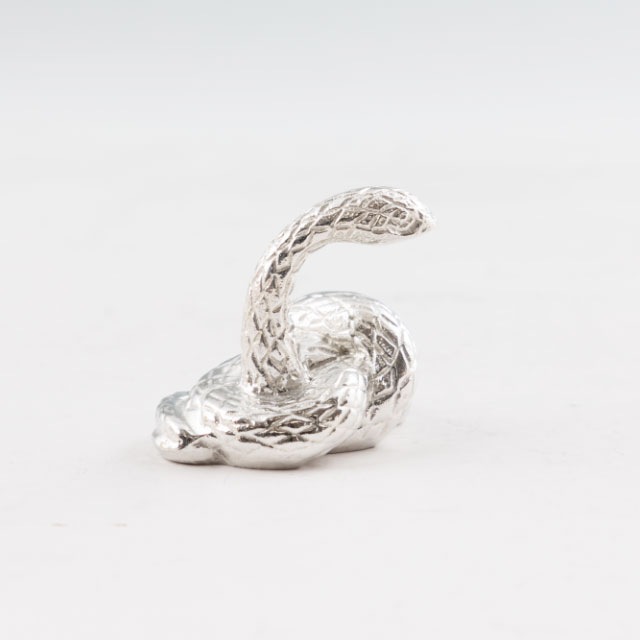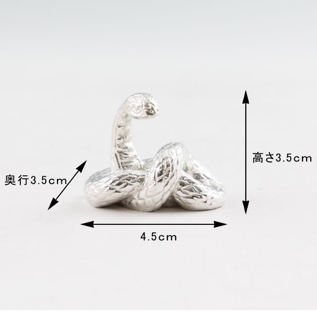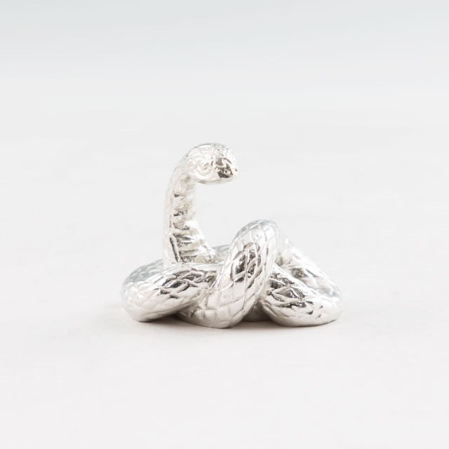 | 錫製の置物、蛇 ARARE 白加工です。蛇は、「豊穣と生命力の象徴」として信仰されています。小さいながらも、今にも水陸さらには木の上まで、どこでもかつ素早く行動しようとする様から力強さを感じることができます。 薩摩錫で細部まで表現した鱗と表情が日々の生活を見守ってくれるはずです。 縁起物として記念品や贈りものにいかがでしょうか。 | |