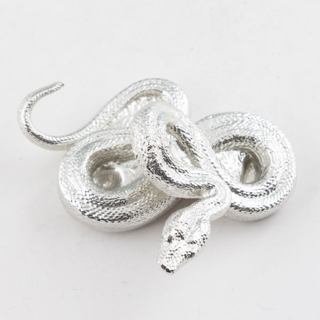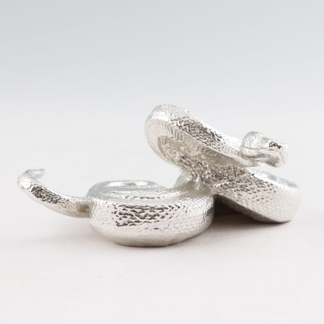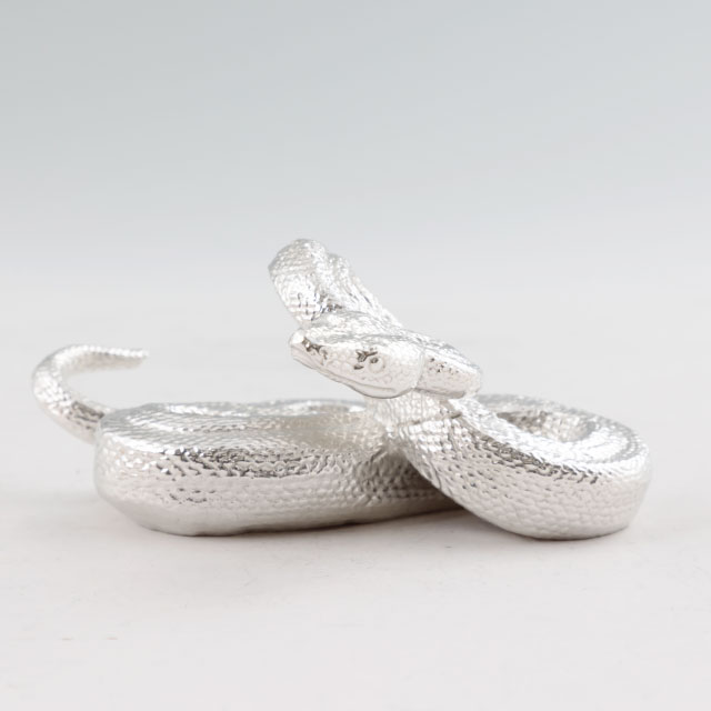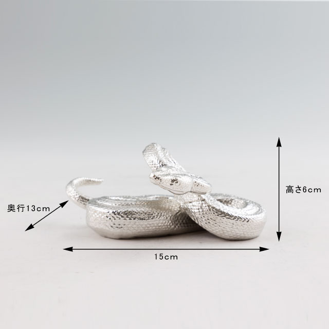 | 錫製の置物、蛇置物 KOURIN 黒漆加工台付です。大きな蛇に遭遇した後は、大きな幸運がやってくると言われ、長く生きていそうな蛇ほど大きな幸運がやってきます。ずっしりとした薩摩錫の重厚感と共に、幸運が現れるはずです。縁起物として記念品や贈りものにいかがでしょうか。 | |