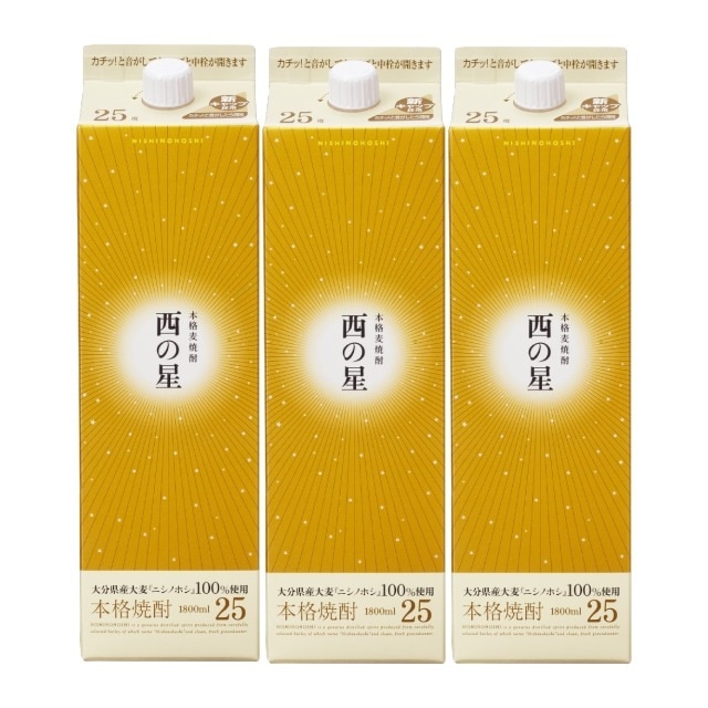 【送料無料】西の星パック 25度 1800ml×3本 麦焼酎 三和酒類 大分県