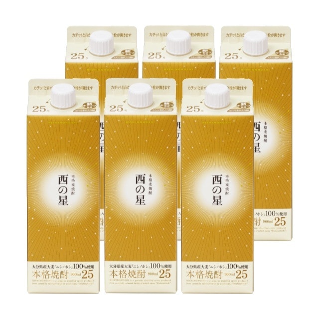 【送料無料】西の星 パック 25度 900ml×6本 麦焼酎 三和酒類 大分県