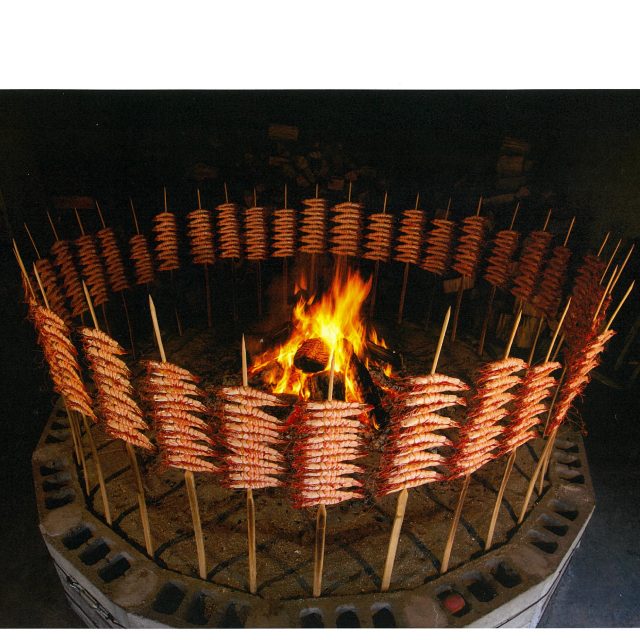 | 焼海老は祝事、 お正月には欠かすことのできない縁起のよい品として古くから親しまれています。古来薩摩では、お吸物・お雑煮等には、お椀より頭と尾の出る一尾の海老をそのまま入れて、その大小により格式が決められたと言われております。 熊本県芦北地方の不知火海で、風のカで動かす船を使った、古来より伝わる「ケタ打瀬漁」により水深20~30mで獲れた海老を厳選し、一尾ずつ丁寧に手焼した貴重な逸品でございます。車海老科の更に希少価値の高い、くま海老(クマエビ)を代々使用しております。是非一度!ご賞味ください。 |