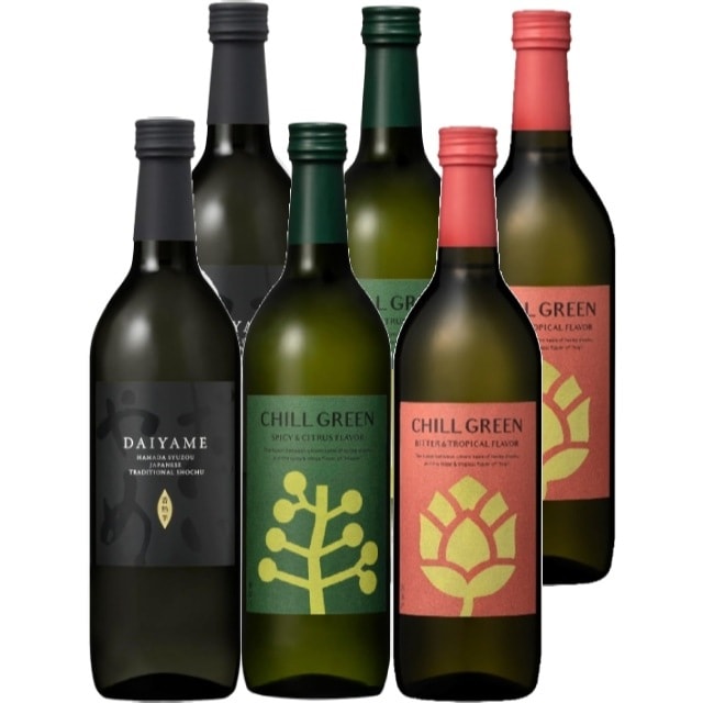| 焼酎王国鹿児島から、おすすめの逸品。 「だいやめ」IWSC2019 最高金賞受賞「ライチのような香り」が、国境を越えて高評価を獲得! 炭酸割が特におすすめ! チルグリーン spicycitrus 新感覚ボタニカル系麦焼酎。こだわりスパイス「マーガオ」と麦焼酎の旨さが融合した、新感覚の酒質に仕上がりました。 チルグリーン bitter&tropical 麦焼酎の旨さを融合させる原料として「ホップ」に注目。特に、希少品種の「ギャラクシーホップ」を使用した独自のこだわり製法により、ピンクグレープフルーツのような甘く爽 やかな柑橘香と、ほろ苦い味わいを実現。 |