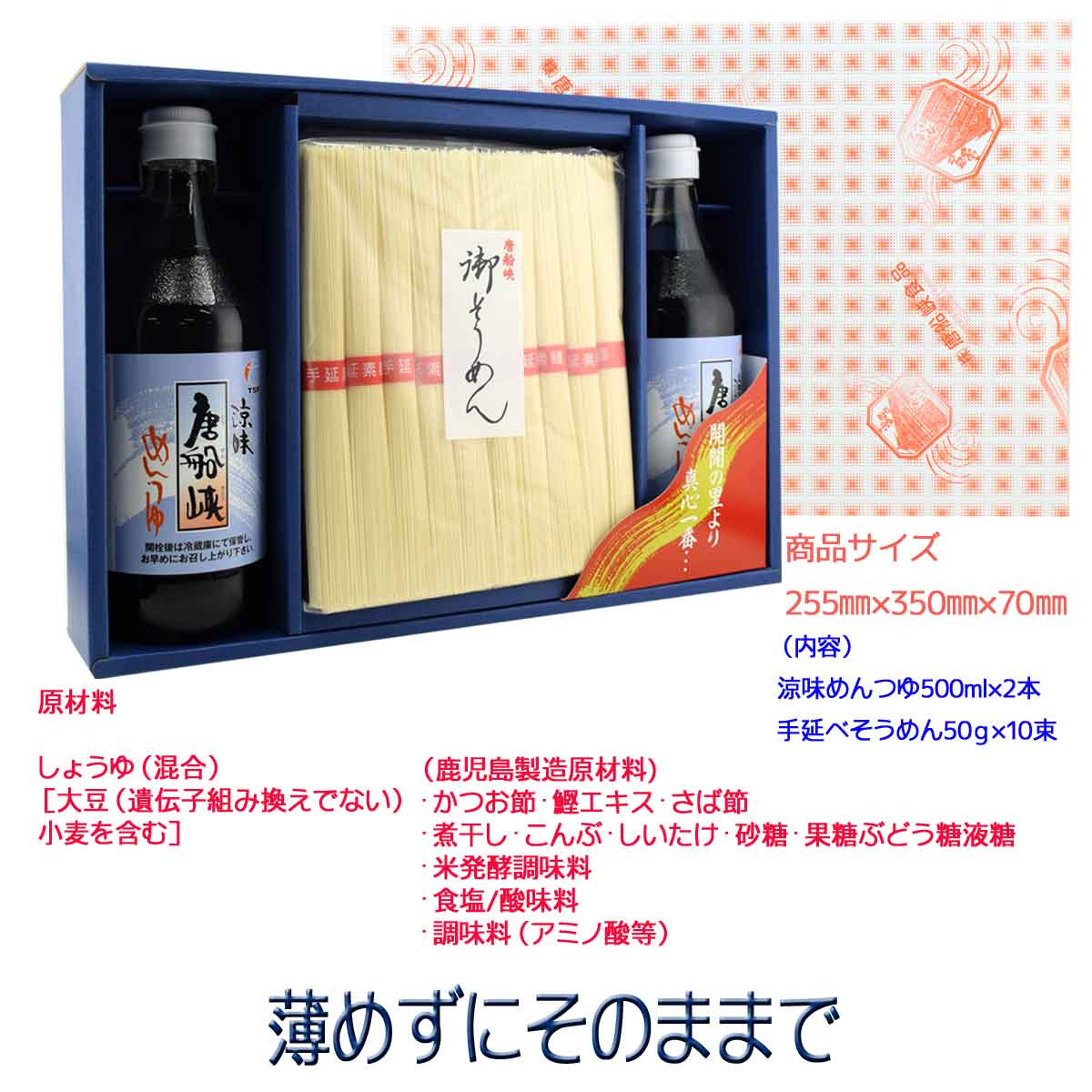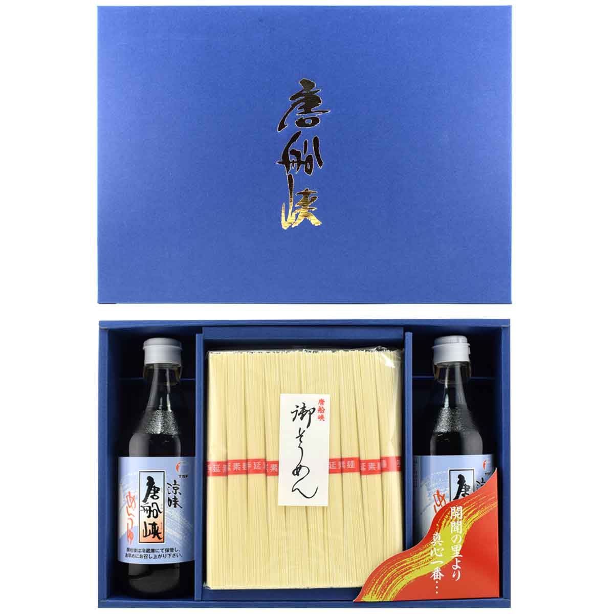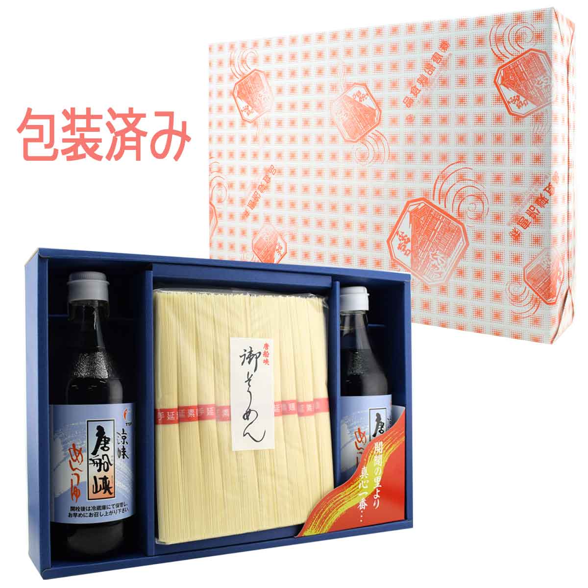 [ギフト] 唐船峡食品 箱入り包装 めんつゆ500ml×2本&手延べそうめん50g×10束