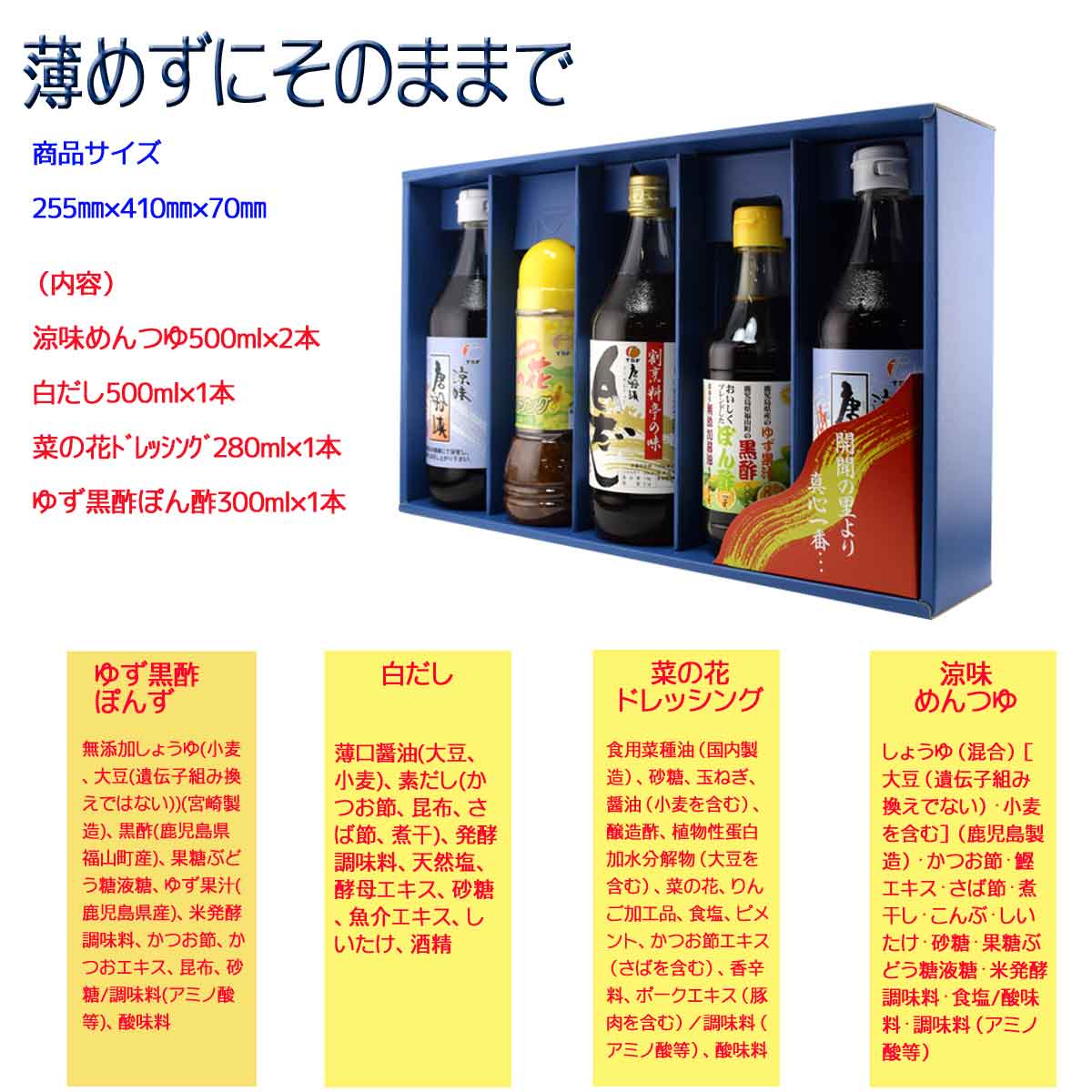 [バラエティギフト] 唐船峡めんつゆ 菜の花ドレッシング ゆず黒酢ぽん酢 白だし