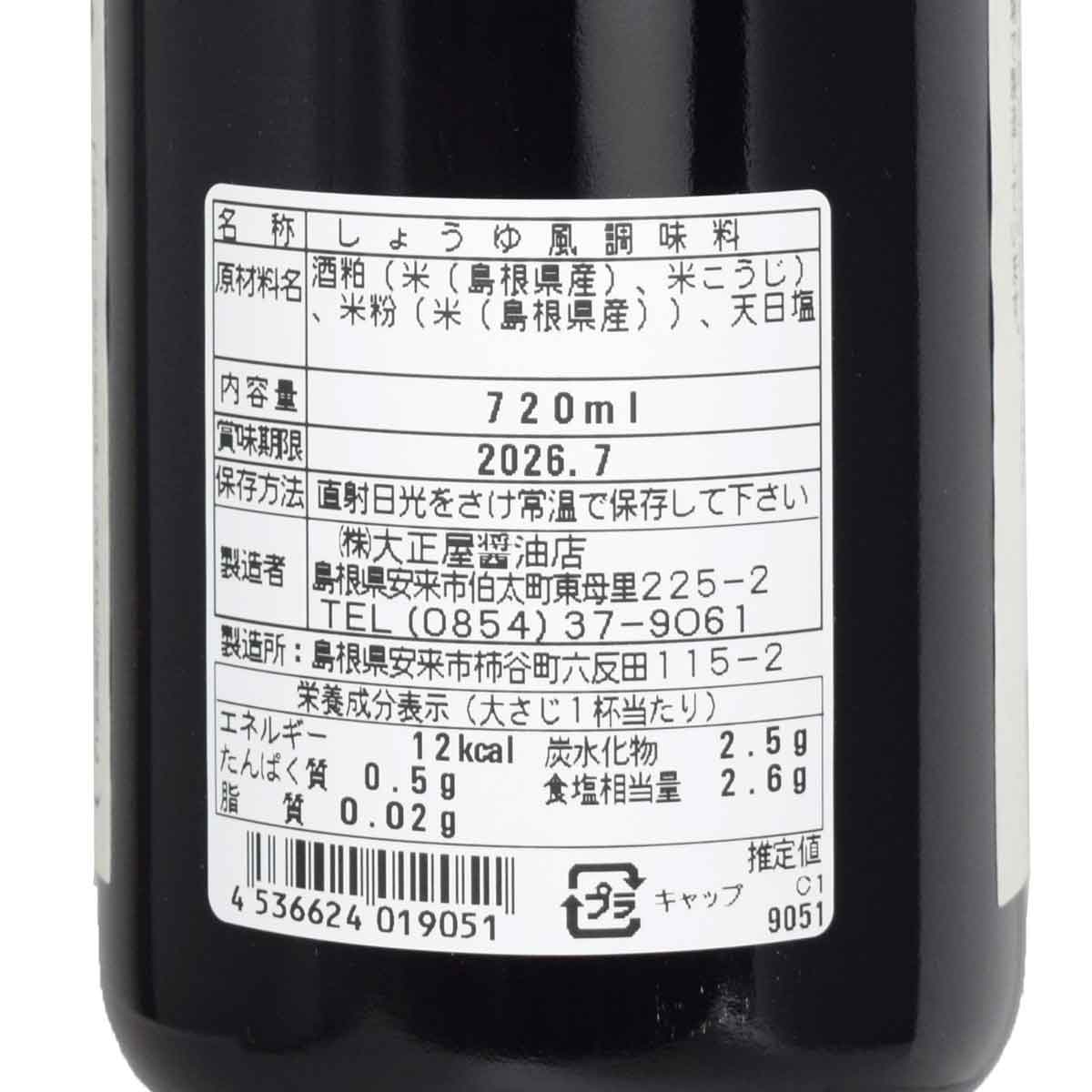 [大豆、小麦不使用] お米から造った純米しょうゆ 720ml 大正屋?油 島根県
