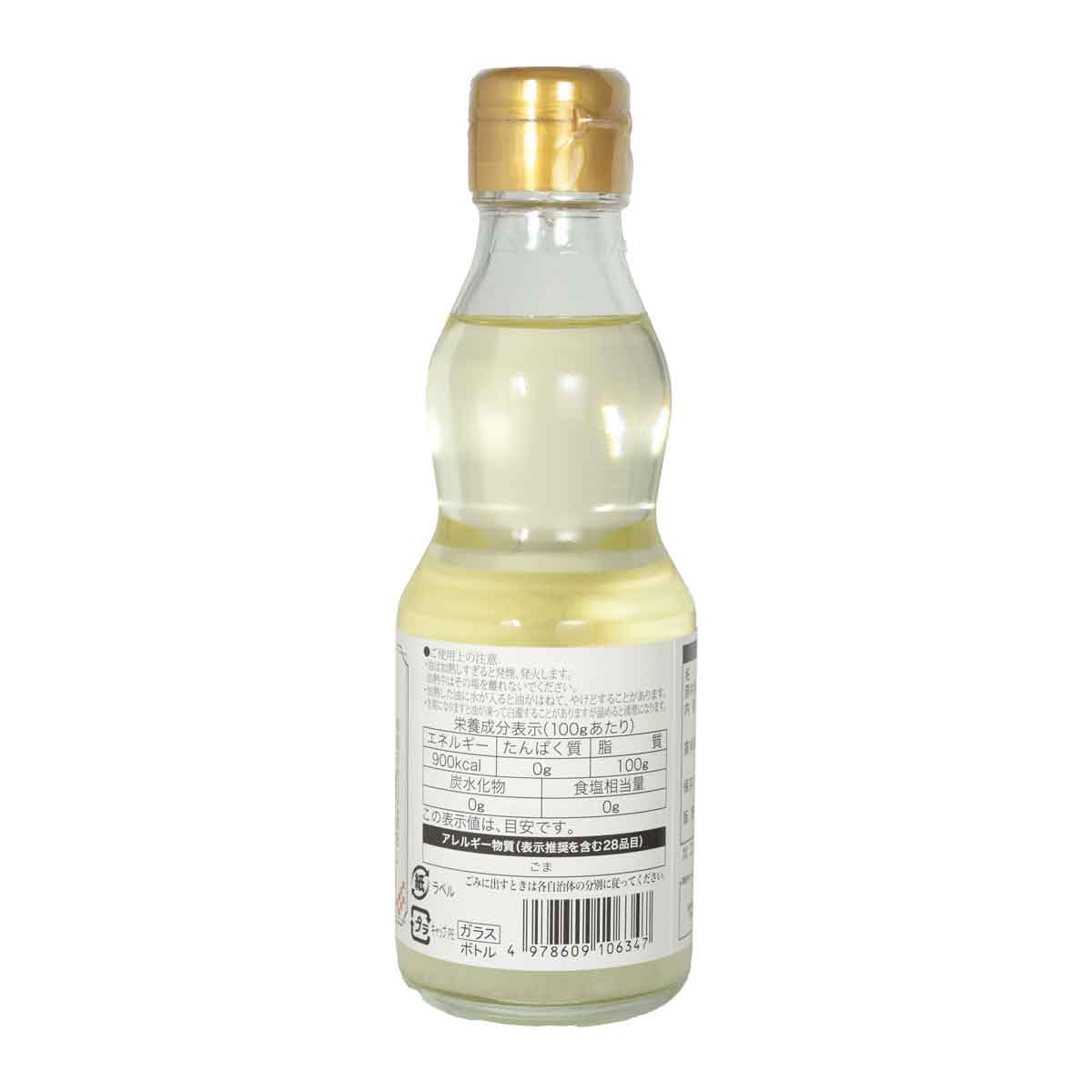 | ☆精選された原料のごまを焙煎せずに蒸して圧搾しているので焙煎胡麻油独特の香りがなく、色もほぼ透明ですが、ごま本来の旨みがある胡麻油です。 ☆素材の味を引き立てたい揚げ物やドレッシングなどにおすすめです。 食べ方・使用方法 ☆揚げる、炒める、焼く、和える、かける等、幅広い用途にご使用いただけます。 ☆シフォンケーキ等のお菓子にも素材の風味を引き立たせます。 *沈殿物はごまの成分です。そのままお召し上がり下さい。 | |