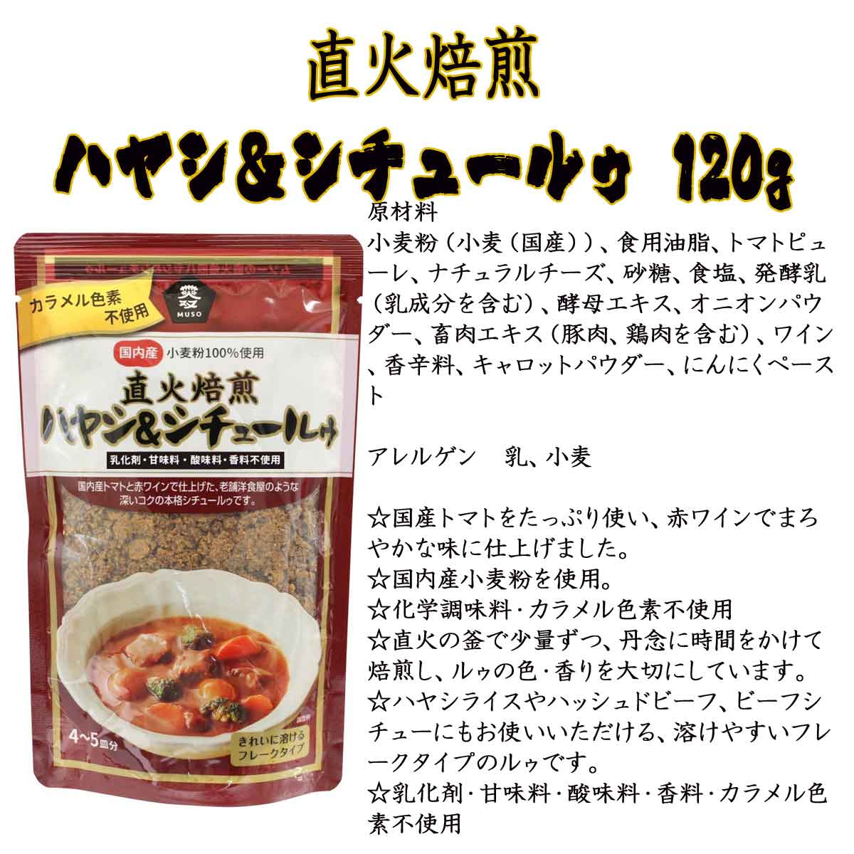 [ムソー] 直火焙煎ハヤシ&シチュールゥ 120g