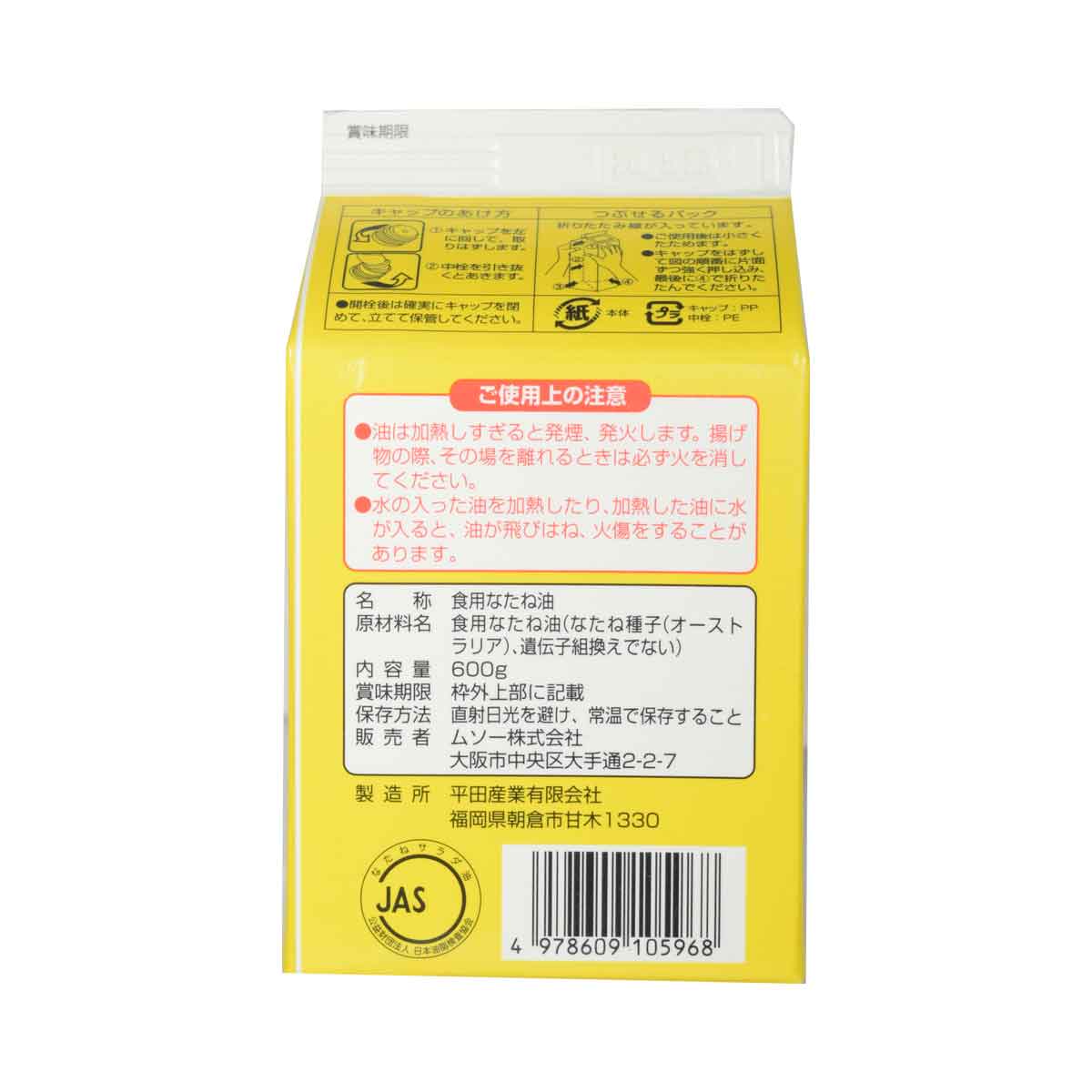 [ムソー] 純正なたねサラダ油 600g紙パック