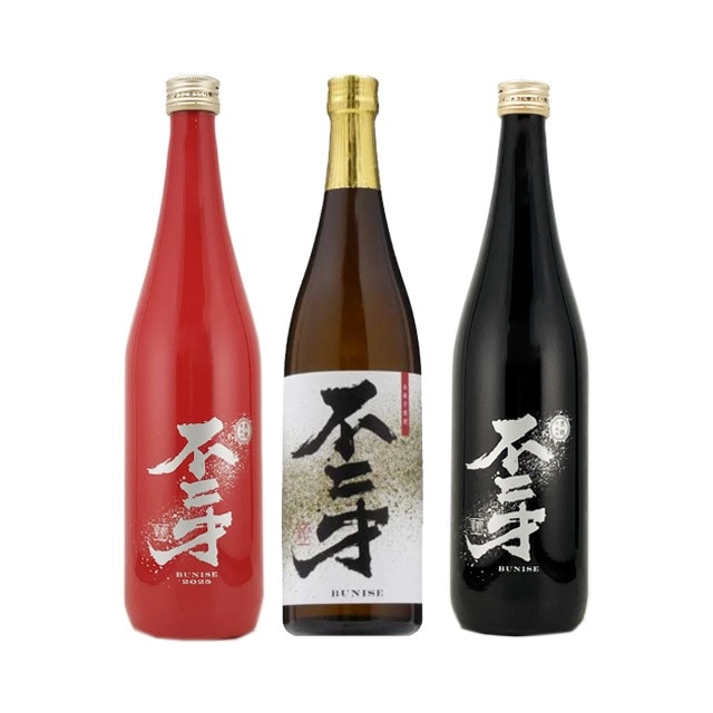 | 不二才(ぶにせ)白麹で仕込みすっきりとした喉越しの後に、芋の甘みがほんわかと残る印象です。芋焼酎「通」の方にお奨めです。また、限定の黒麹仕込で仕込んだ不二才 RED・BLACKボトルをセットにしました。コクのある甘味と口当たりの良さを兼ね備え、口に含むと、 まるで蒸したさつま芋のような味わいが広がります。 | |