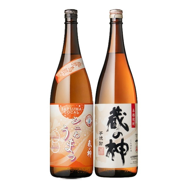| 蔵の神は、甘口の蔵付酵母(蔵付酵母を採取培養した自家製の酵母)を使用した、豊かな香りと口当たりの良い甘口タイプの本格芋焼酎です。 シュわうまッ 蔵の神は、ムラサキマサリの華やかな香りと、紅はるかの甘い香りが立ち、炭酸割でスッキリとキレよく飲むことがでる甕仕込みの本格芋焼酎です。 |