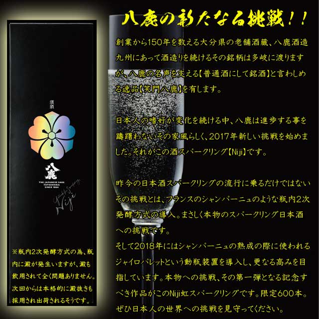 純米 日本酒スパークリング Niji 虹 8度 360ml 八鹿酒造