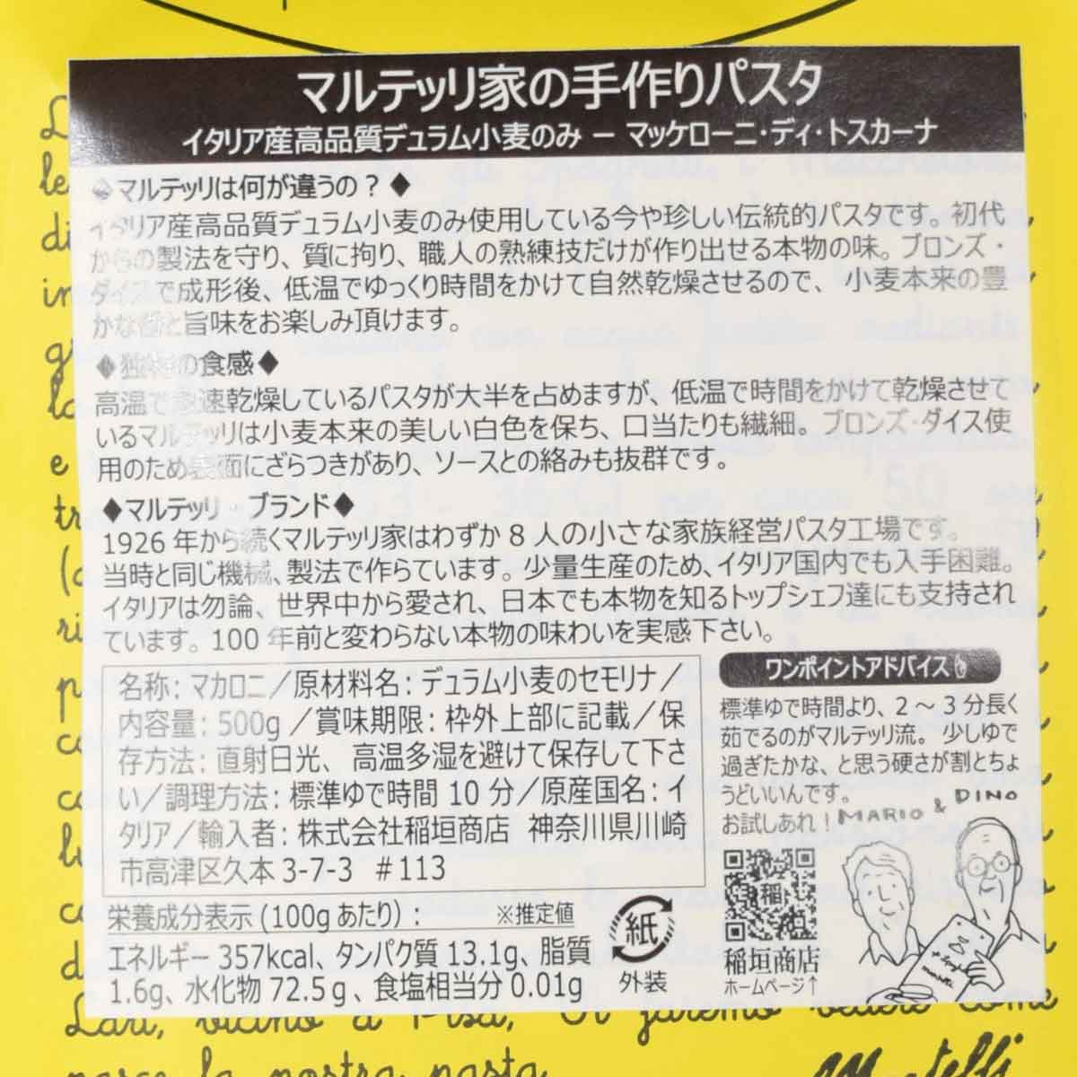 [マカロニ]マルテッリ マッケローニ・ディ・トスカーナ 500g袋入り ブロンズダイス製法