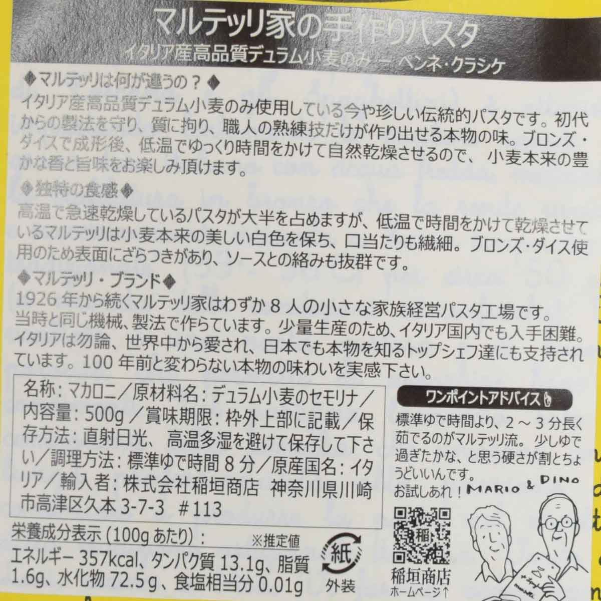 [ペンネ] マルテッリ ペンネ・クラシケ 500g ブロンズダイス製法