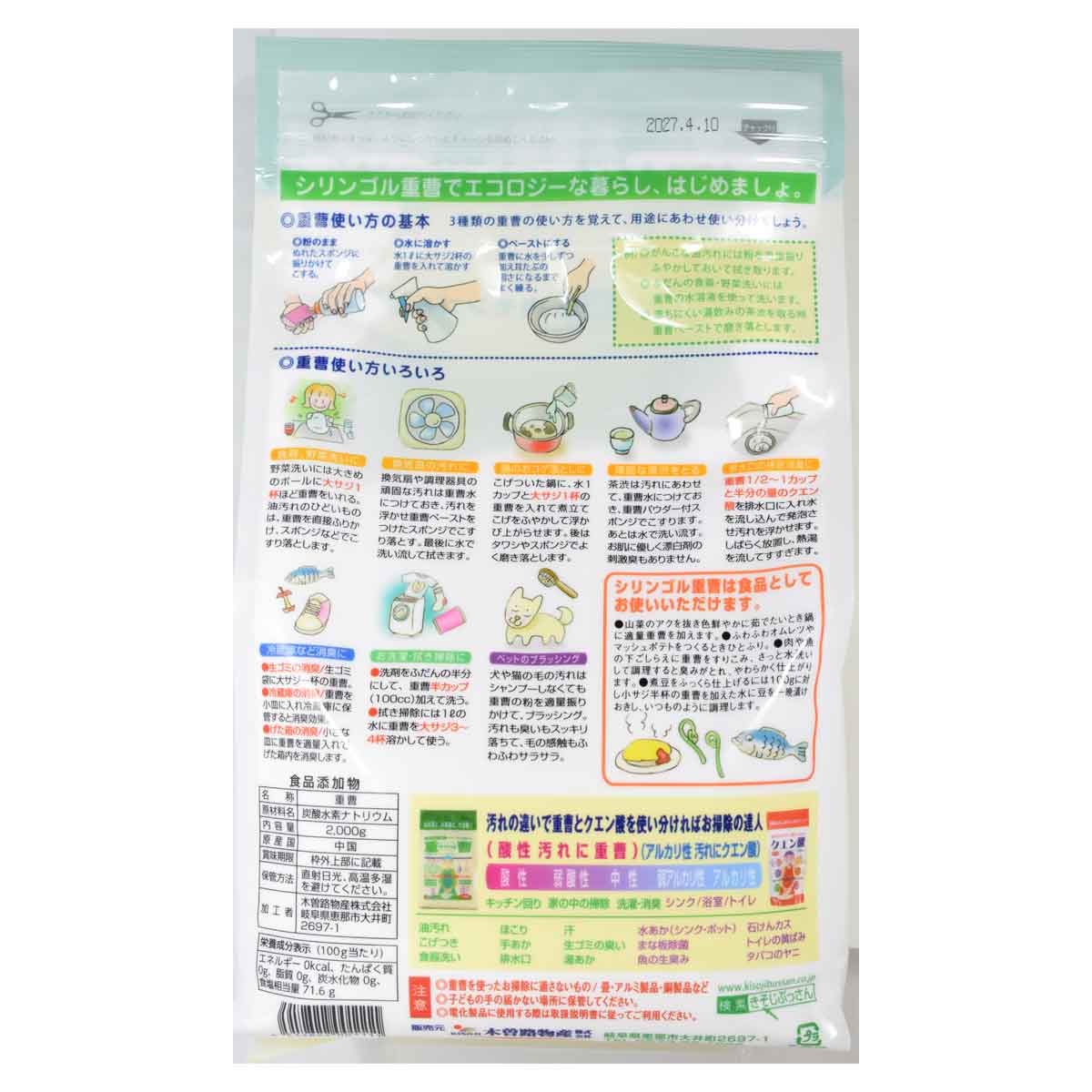 [2kg] 重曹 Baking soda 木曽路物産 内モンゴル天然素材 食品グレード(食品添加物)