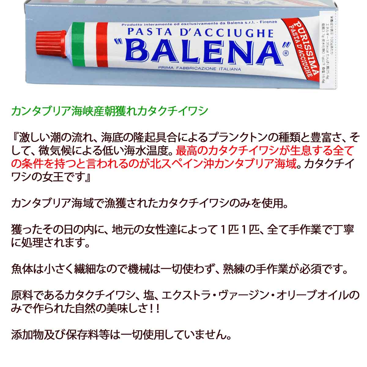 | トスカーナの伝統パスタ、マルテッリスパゲッティ2.0mm(500g紙袋)&バレーナアンチョビペーストの大容量65g、そして世界遺産にも匹敵する美しさを誇る天空の鏡・ウユニ塩湖で採れたウユニの塩をセットしたパスタキットです。ニンニク、鷹の爪、オリーブオイルがあればおいしいパスタが出来ちゃいますよ♪ | |