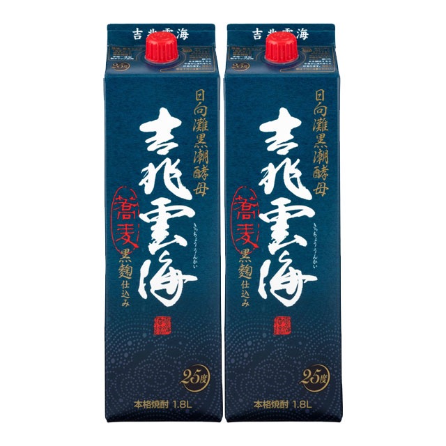 【送料無料】吉兆雲海 黒麹仕込み パック 25度 1800ml×2本 そば焼酎 雲海酒造