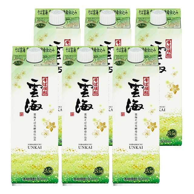 【送料無料】雲海そば 花酵母仕込み パック 25度 900ml×6本 そば焼酎 雲海酒造
