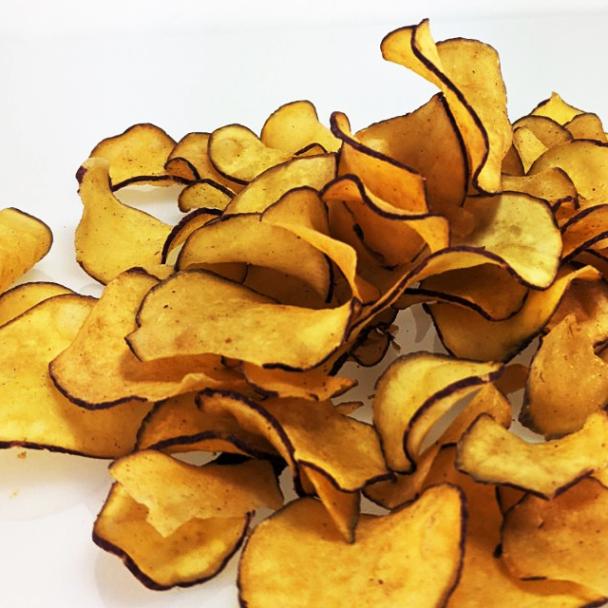 | 薩摩半島の紅さつまを使用し、薄く輪切りにしサラダ油で揚げ、甘さを控え上品な味に仕上げています。 | |