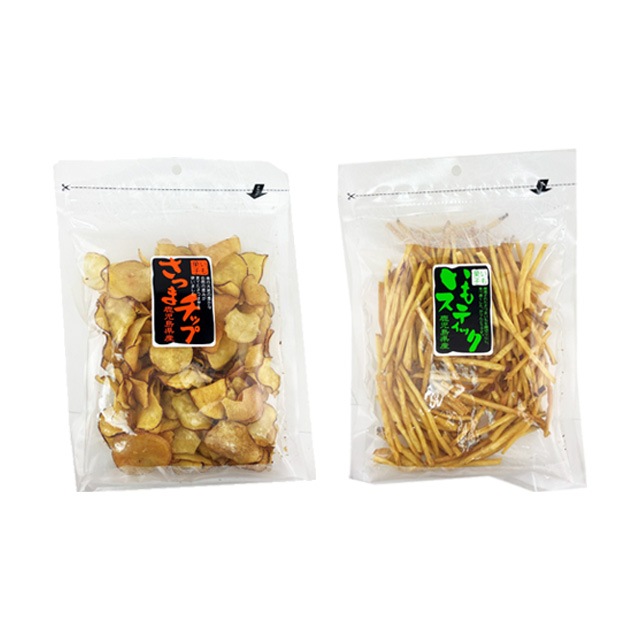 | いも菓子食べ比べセット!さつまチップ120g・いもスティック120g。チャック付なので便利です。 | |