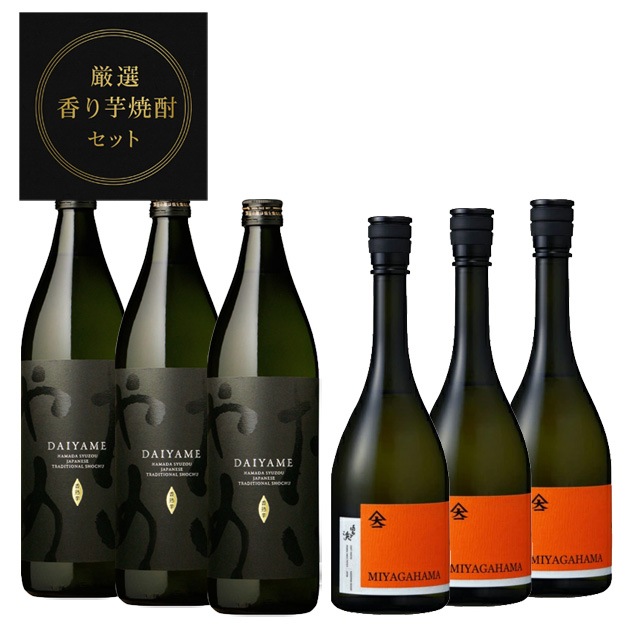 | 厳選 香り焼酎セット(だいやめ・宮ヶ浜AROMA)900ml×3本・720ml×3本 計6本セットになります。「華やかな香り」を持つ銘柄だけを厳選しました。炭酸割りで楽しめるセットになります。 色々ある香り焼酎の中から、厳選! だいやめは、IWSC2019年焼酎最高賞受賞しライチ香る芋焼酎。宮ヶ浜AROMAは、鹿児島限定品であり、原料に【玉茜】を使用。 ぜひ飲み比べをお楽しみください!! |