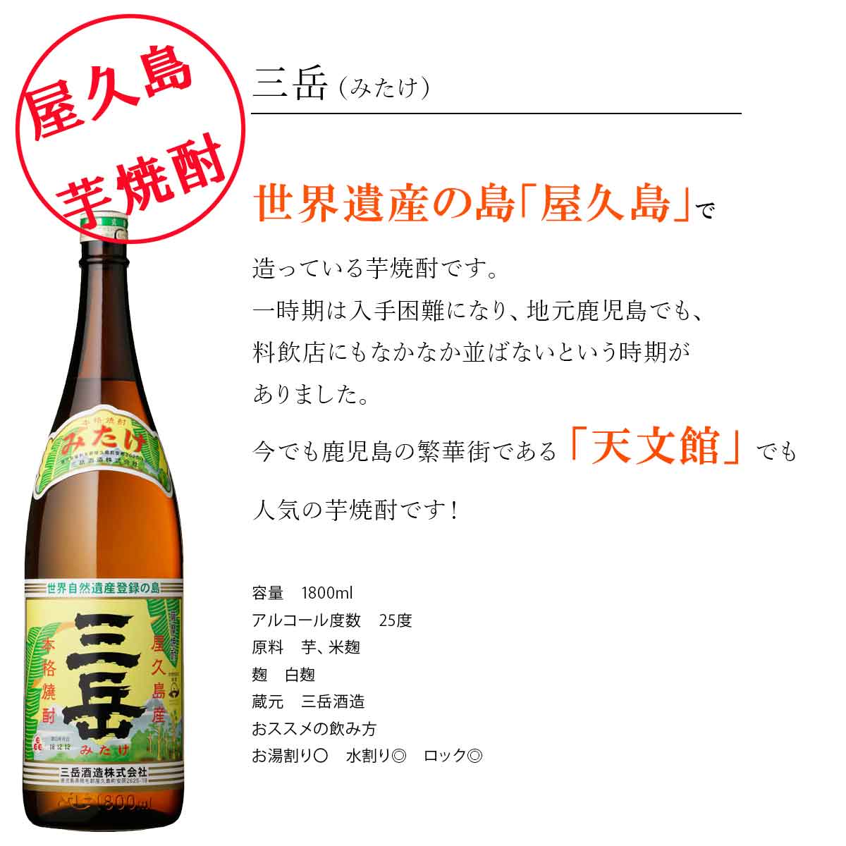 【送料無料】だいやめ・三岳・紫の赤兎馬・赤霧島・白玉の露・海 25度 1800ml×6本