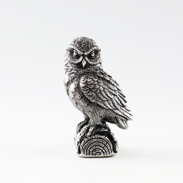 薩摩錫器 錫 置物 ふくろう 白仕上げ加工 189-3-1-A 岩切美巧堂 代引不可