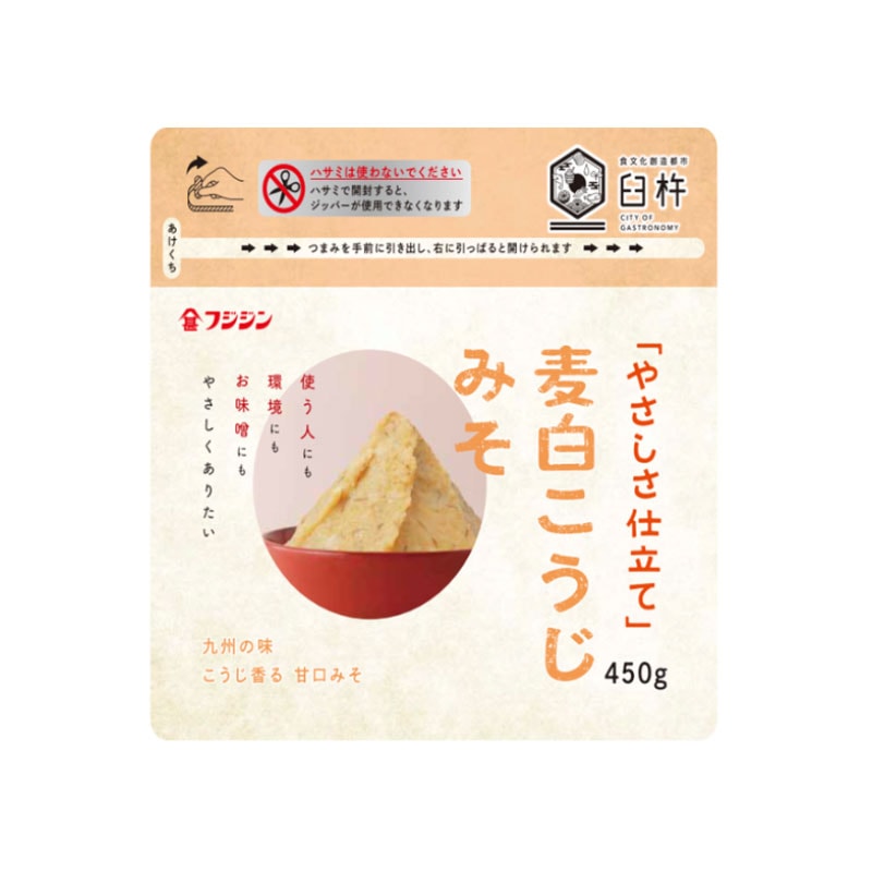 フジジン ジップ味噌 やさしさ仕立て麦白こくじみそ 450g 富士甚醤油