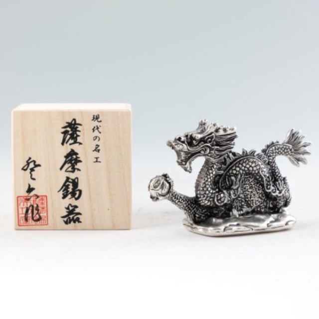 薩摩錫器 錫 置物 龍-TAKUMI 黒漆加工 W12×H7 186N-5 岩切美巧堂 代引不可