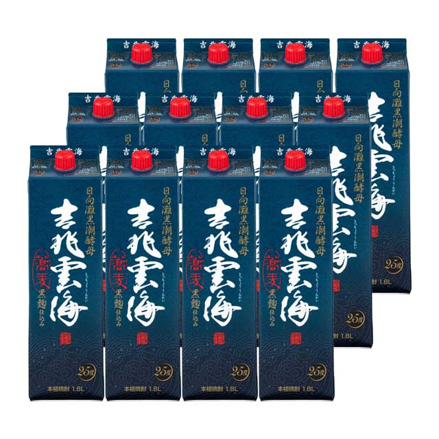 【送料無料】吉兆雲海 黒麹仕込み パック 25度 1800ml×12本 そば焼酎 雲海酒造