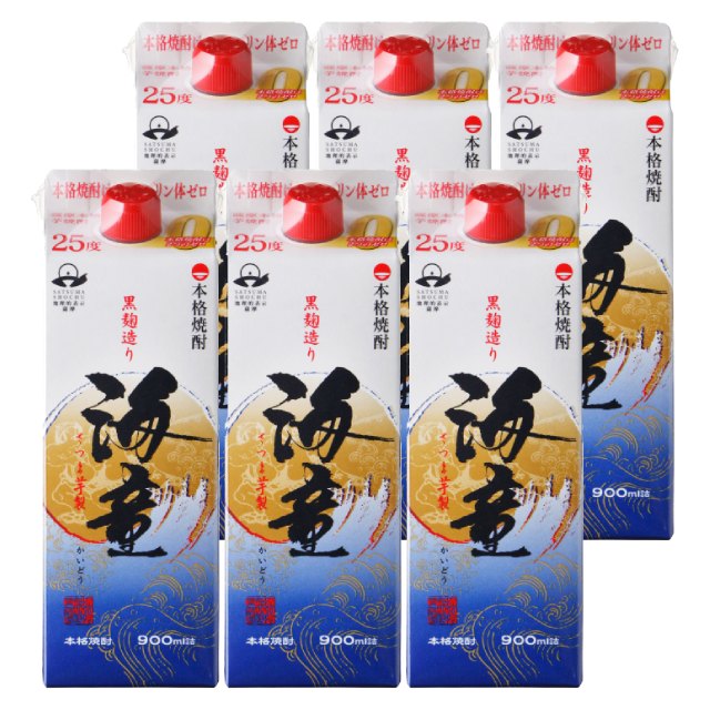 【送料無料】海童(かいどう) 黒麹 スリムパック 25度 900ml×6本 芋焼酎 濱田酒造 鹿児島