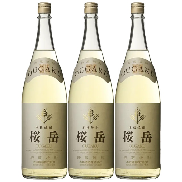 【送料無料】貯蔵焼酎 桜岳(おうがく) 25度 1800ml×3本 麦焼酎 本坊酒造